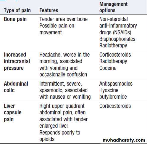 area, looking for signs of neuropathic pain or bony tenderness suggestive of bone metastases. In patients with cancer, it should not be assumed that all pains are due to the cancer or its metastases.