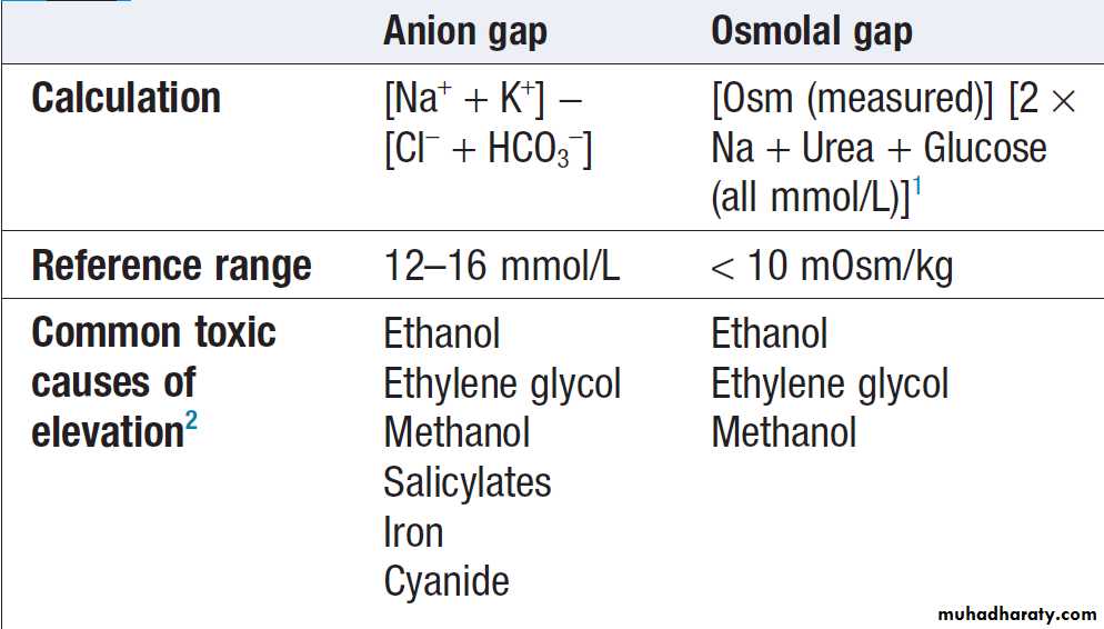 Poisoning is a common cause of coma, especially in younger people, but it is important to exclude other potential causes unless the aetiology is certain. Urea, electrolytes and creatinine should be measured in all patients with suspected systemic poisoning. Arterial blood gases should be checked in those with significant respiratory or circulatory compromise, or when poisoning with substances likely to affect acid–base status is suspected .Calculation of anion and osmolar gaps may help to inform diagnosis and management . For a limited number of specific substances, management may be facilitated by measurement of the amount of toxin in the blood . Qualitative urine screens