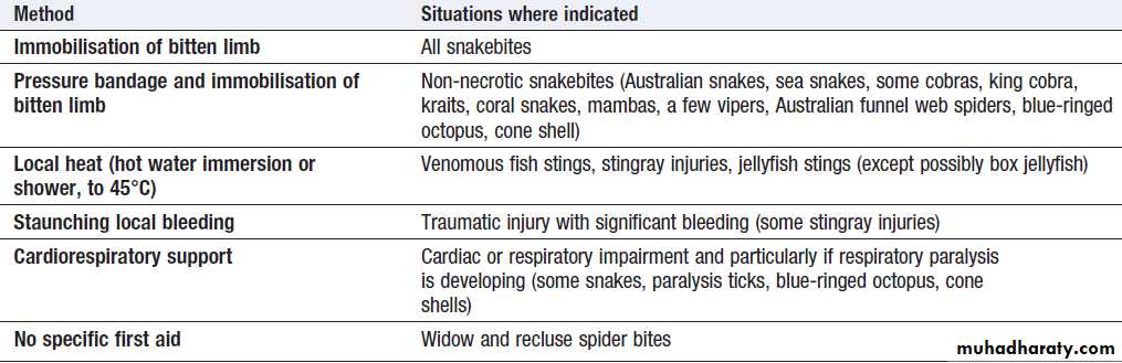 Tetanus is a risk in some bites or stings, such as snakebite, but intramuscular toxoid should not be given until any coagulopathy is reversed.