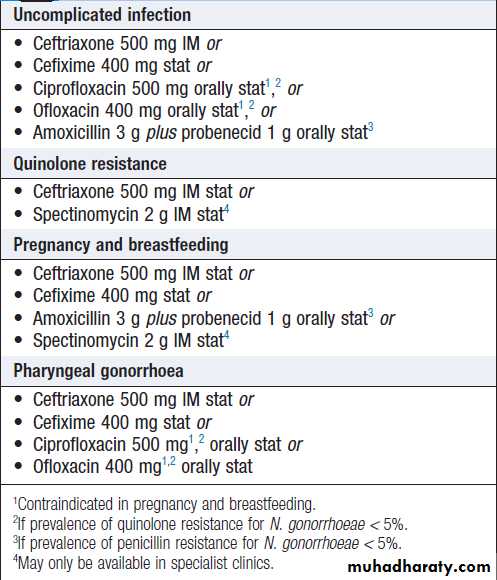 A swab should also be taken from the pharynx because gonococcal infection here is not reliably eradicated by single-dose therapy.