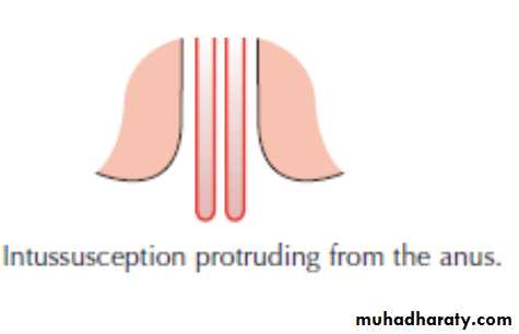 In the case of a child with abdominal pain, prolapse of the rectum must be distinguished from ileocaecal intussusception protruding from the anus.In rectosigmoid intussusception in the adult, there is a deep groove (5 cm or more) between the emerging protruding mass and the margin of the anus, into which the finger can be placed.