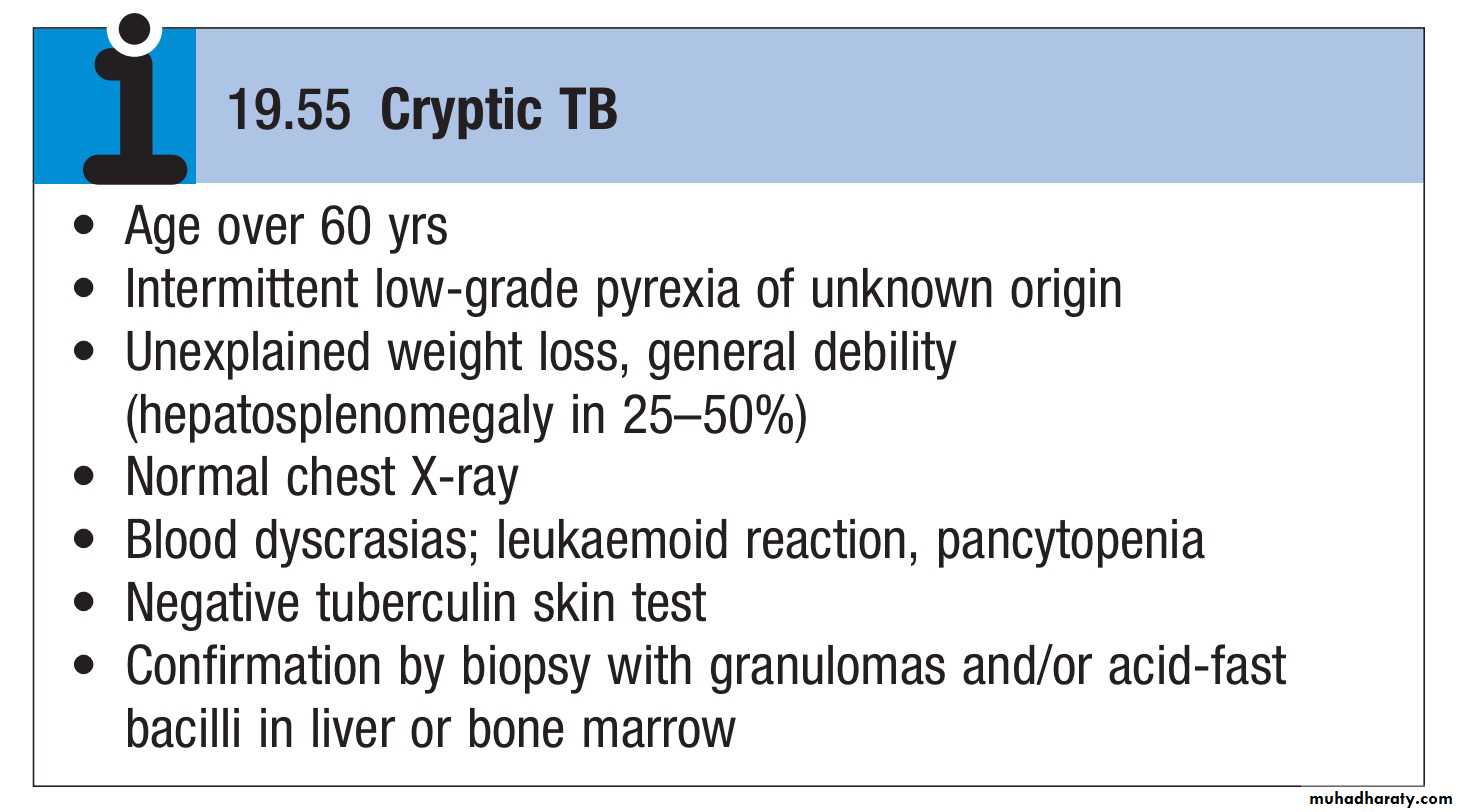 ‘Cryptic’ miliary TB is an unusual presentation sometimes seen in old age.