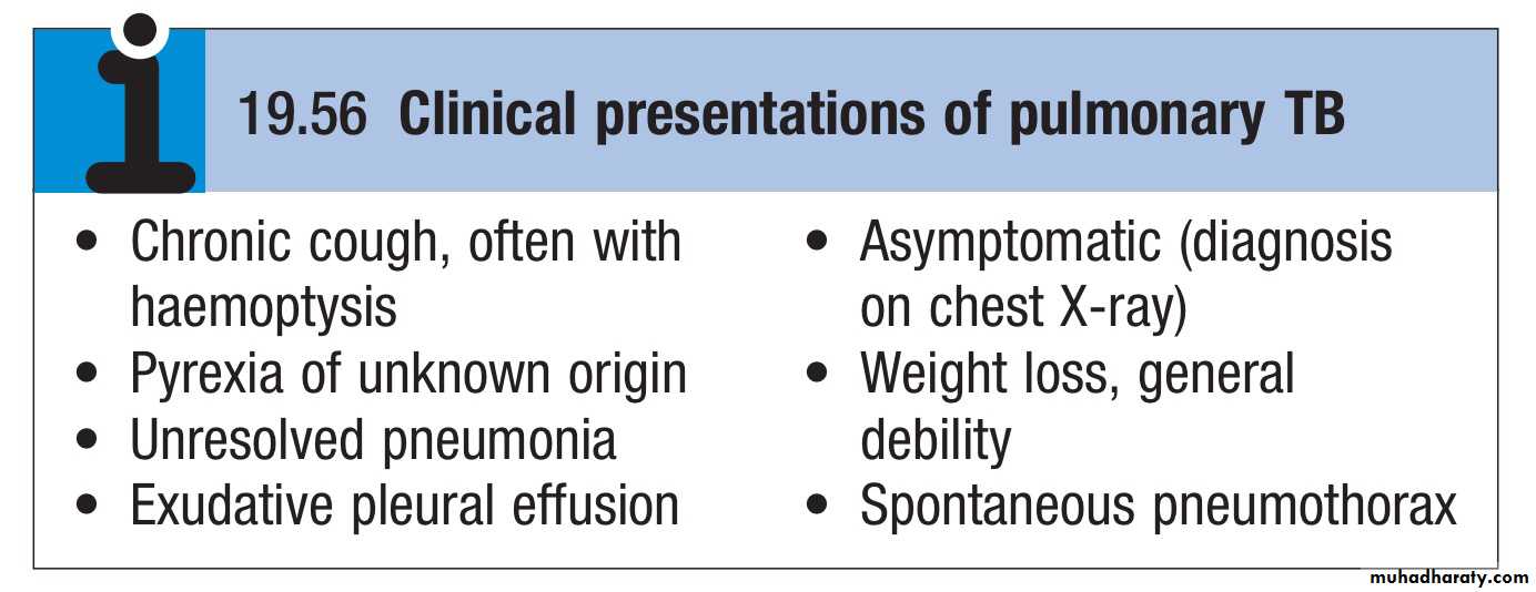 Blood-borne dissemination gives rise to miliary TB, which may present acutely but more frequently is characterised by 2–3 weeks of fever, night sweats, anorexia, weight loss and a dry cough.Hepatosplenomegaly may develop