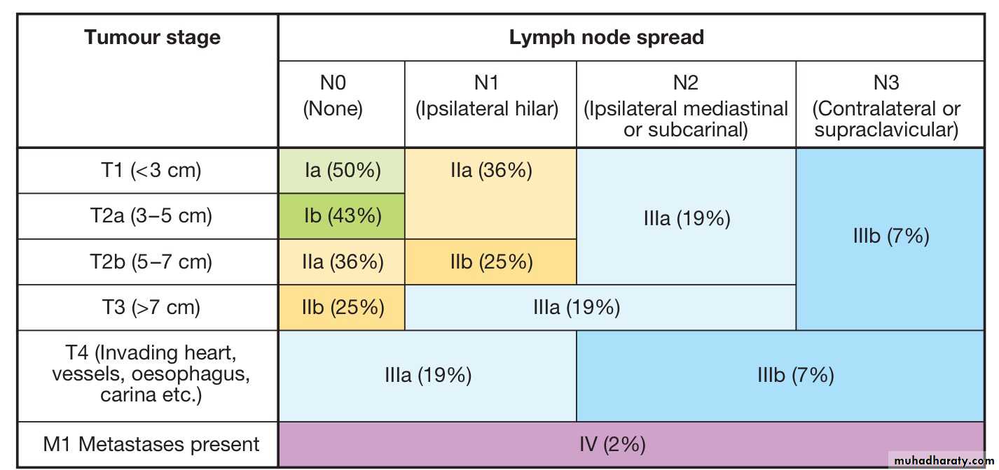 The propensity of small-cell lung cancer to metastasise early dictates that patients with this are usually not suitable for surgical intervention.In patients with non-small-cell cancer, appropriate treatment and prognosis are determined by disease extent, so careful staging is required.