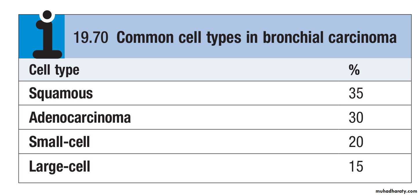 This is the most common early symptom. It is often dry but secondary infection may cause purulent sputum.A change in the character of a smoker’s cough, particularly if associated with other new symptoms, should always raise suspicion of bronchial carcinoma