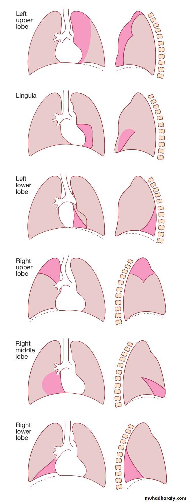 Radiological features of lobar collapse caused by bronchial obstruction.