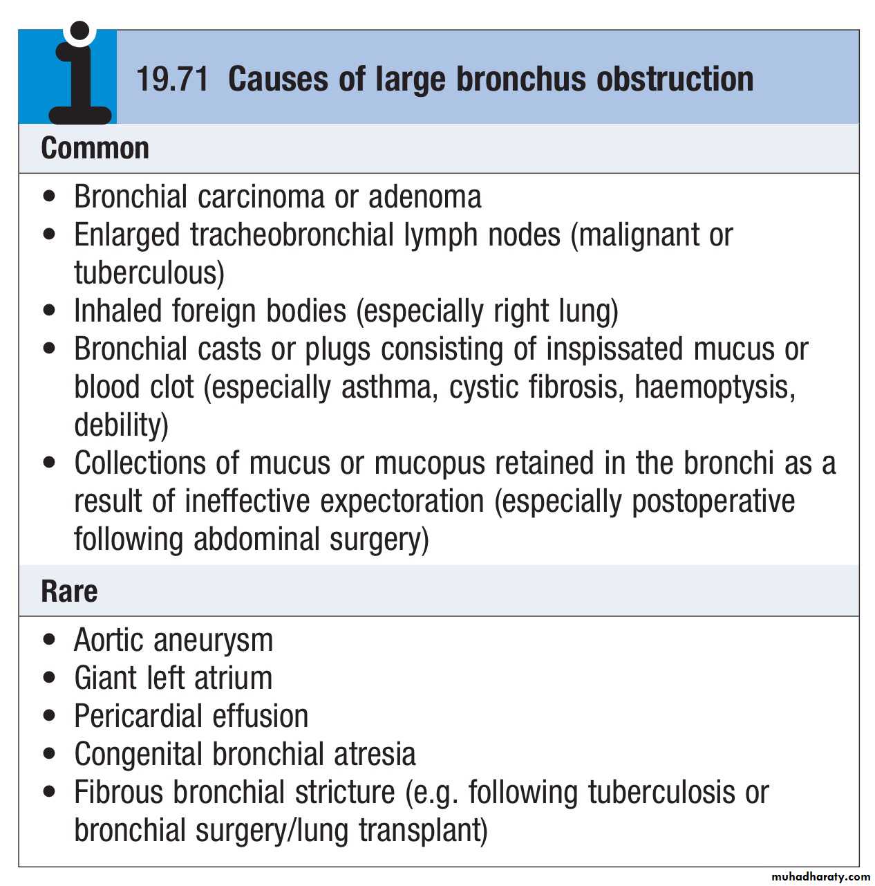This is another common presentation, and the clinical and radiologicalmanifestations depend on the site and extent of the obstruction, any secondary infection, and the extent of coexisting lung disease.