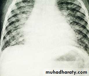 • Chest x-ray showed classical appearance of fine 1-2mm lesions distributed throughout the lung fields .