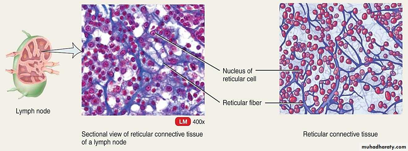 It consists of reticular cells, these are star in shape, has long cytoplasmic extensions and the network of reticular fibers formed by them. Reticular tissue is located in the liver, lymph nodes, spleen, and the bone marrow.
