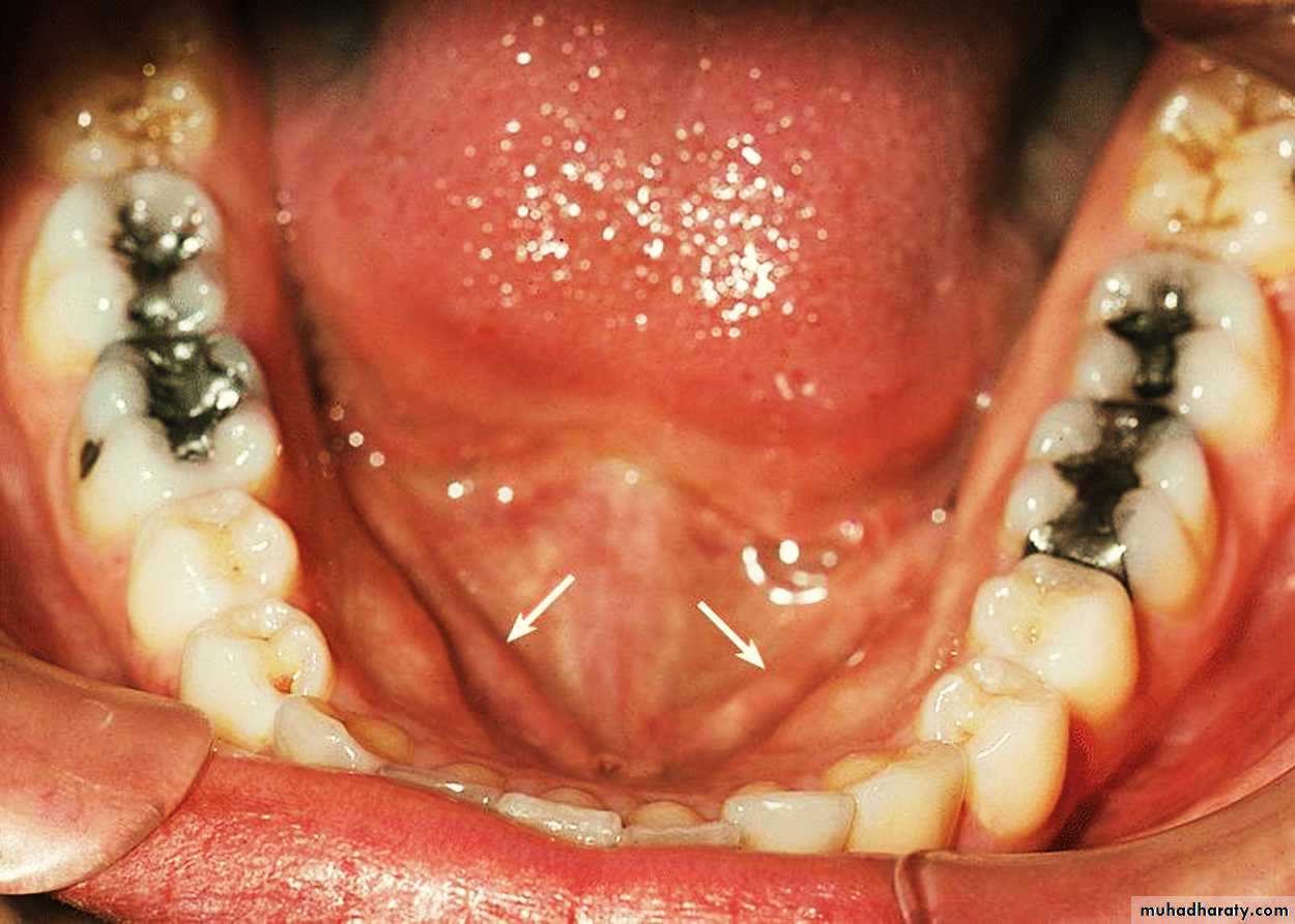 The ventral surface (underside) is stratified squamous non-keratinized epithelium which is smooth.Sublingual Region