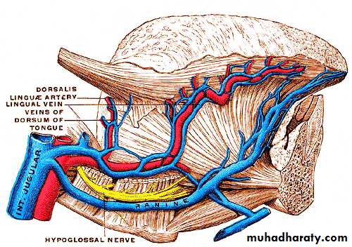 Motor supply :- All intrinsic & extrinsic muscles by hypoglossal nerve except palatoglossus m. (vagus nerve)