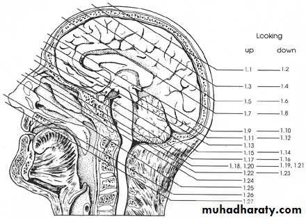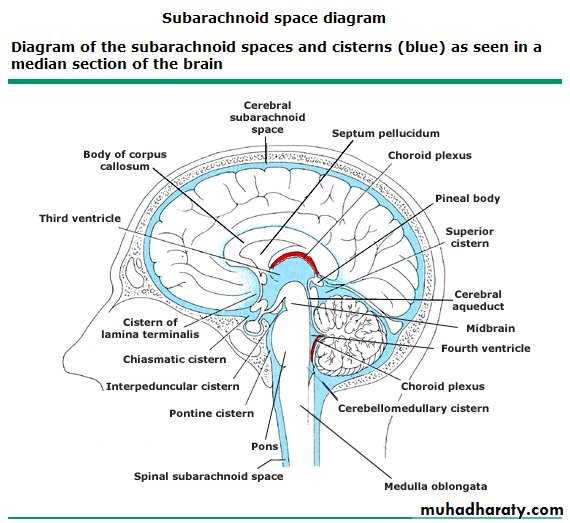 Lateral ventricle ( frontal horn , body ,temporal horn ,& occipital horn ) .Third ventricle .