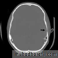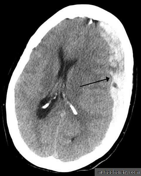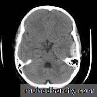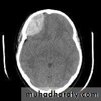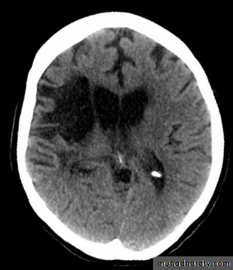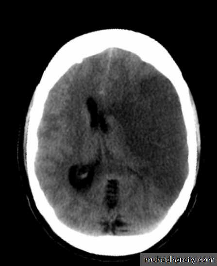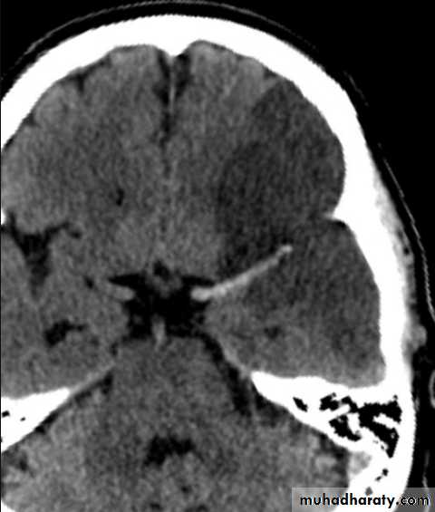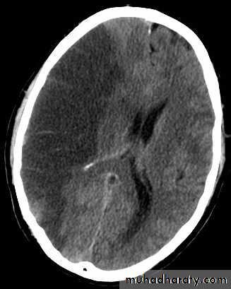 * wedge shape hypo density area.* Shifting of the midline & frontal horn