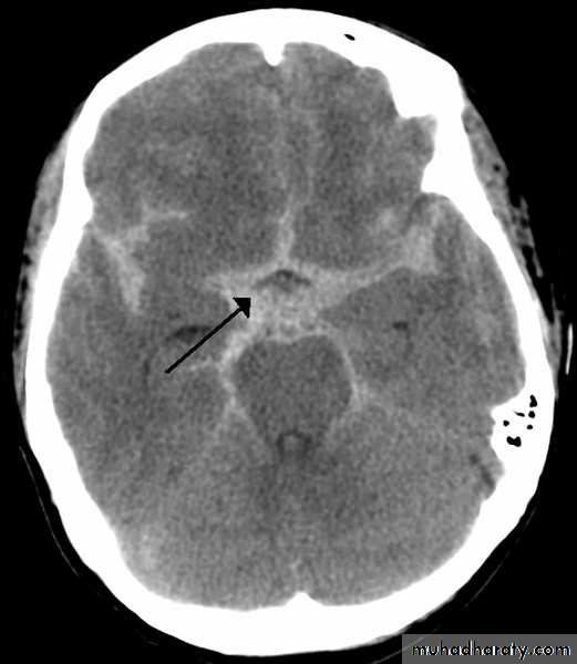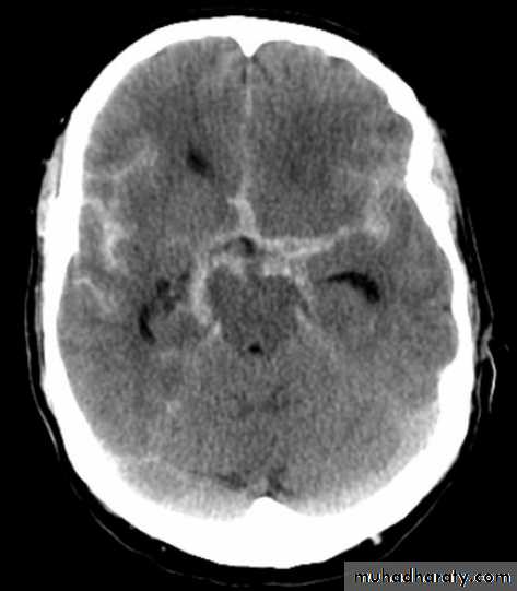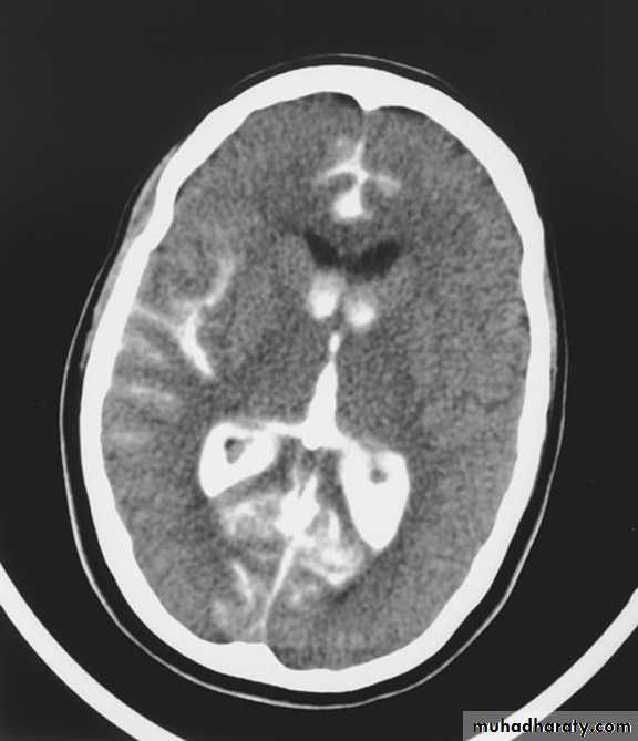 opacified inter hemispheric fissure ( become white & more dense )
