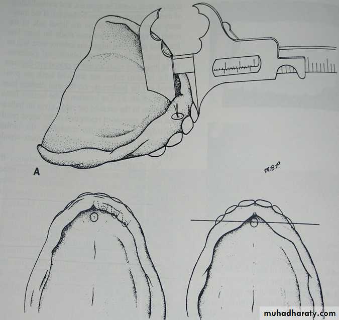 The retromolar pad is exposed and points are marked on pounds lines