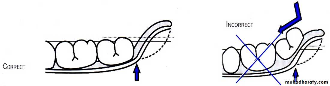 Teeth should not be set on the Tuberosity as it can lead to lever imbalance and might lead to cheek bite in posterior region.Relationship with tongue