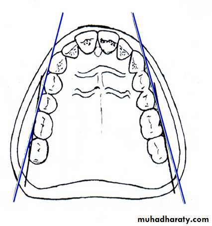 • while the distal plane will be in line with the posterior teeth.
