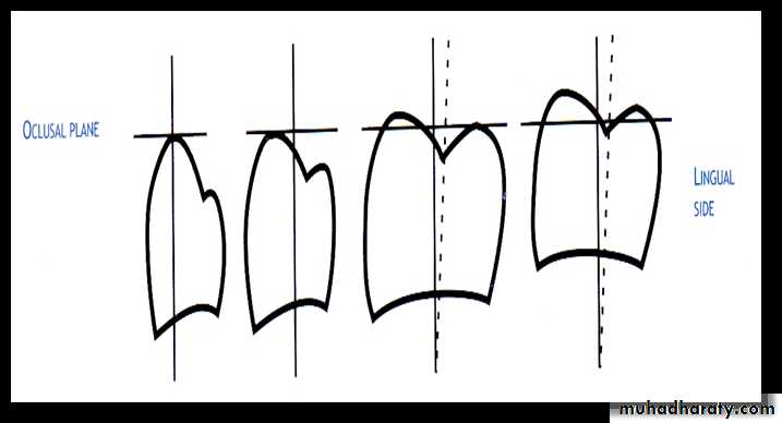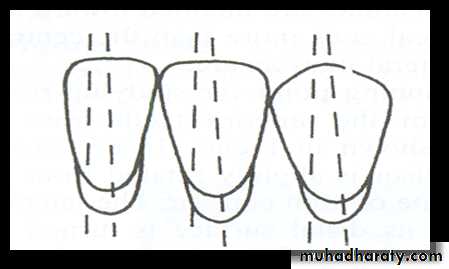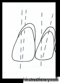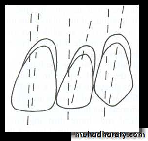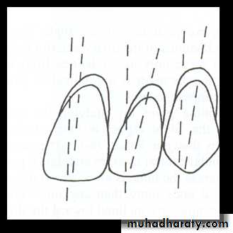 • Mesio-distal inclination:• The maxillary canine is placed so that the long axis has slight distal inclination from the front view.