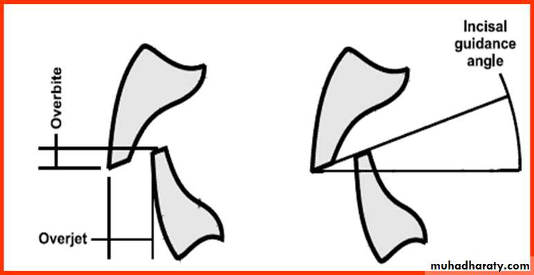 2. INCISAL GUIDANCEINCISAL GUIDE ANGLE: angle formed by intersection of plane of occlusion and line with in sagittal plane determined by incisal edges of maxillary& mandibular central incisors when teeth are in maximum intercuspation .