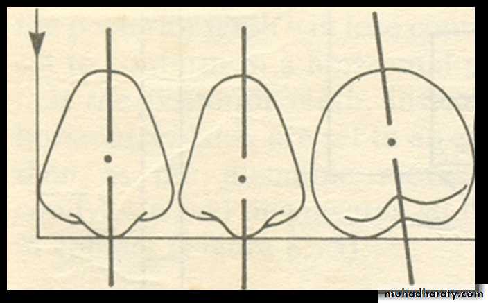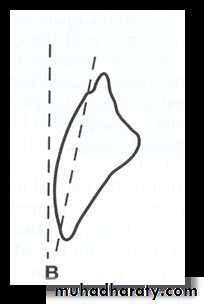 Facial: Long axis rests mesially, when viewed from side.Proximal : Long axis inclines Lingually, when viewed from front.