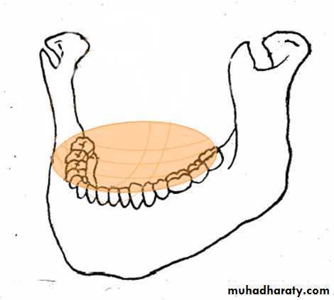 joining the cannine to retromolar pad.Mandibular 1st Molar