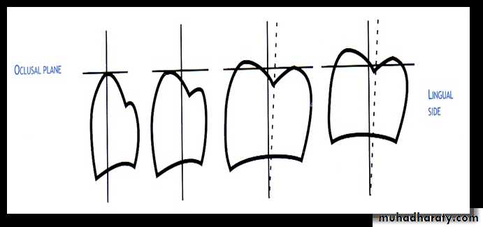 Occlusal : Bu cusp is above the occlusal plane, whereas Li cusp is below occlusal plane.
