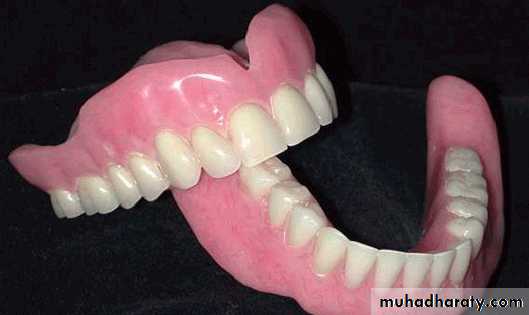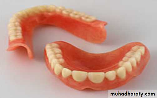 • They are made from acrylic resin, indicated when there is insufficient inter-occlusal distance, and grinding becomes necessary, also in situation where there are opposing natural teeth, partial denture and gold bridge. They are inferior when they are compared with porcelain because they can not maintain shine for long time and abraded easily.