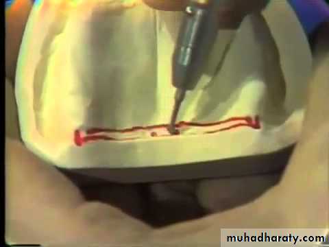 A V-shaped groove (1-1.5)mm deep is carved into the cast at the location of the bead. A large sharp scraper is used to carve it passing through the hamular notches and cross the palate of the cast. The groove will form a bead on the denture that provides the posterior palatal seal area (pps). The bead will be 1-1.5mm high and 1.5 wide at its base.Advantages of posterior palatal seal