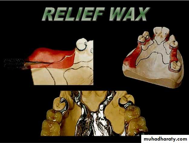 • Relief It is the procedure of placing wax in certain areas on the master cast before duplication, to create a raised area on the refractory cast.• PURPOSE OF RELIEF