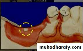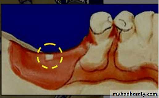 1-Beneath lingual bar connectors or the bar portion of the linguoplates concerning the relative slope of the alveolar ridge.2-Areas in which major connectors will contact thin tissue, such as hard areas so frequently found on lingual or mandibular ridges and elevated palatal raphes and tori.
