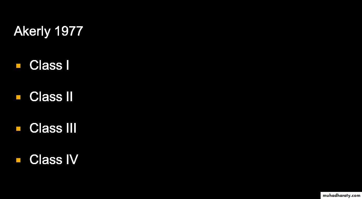 • 5. In the presence of TMD symptoms, the classification is increased in complexity by one or more levels in Class I and II patients.