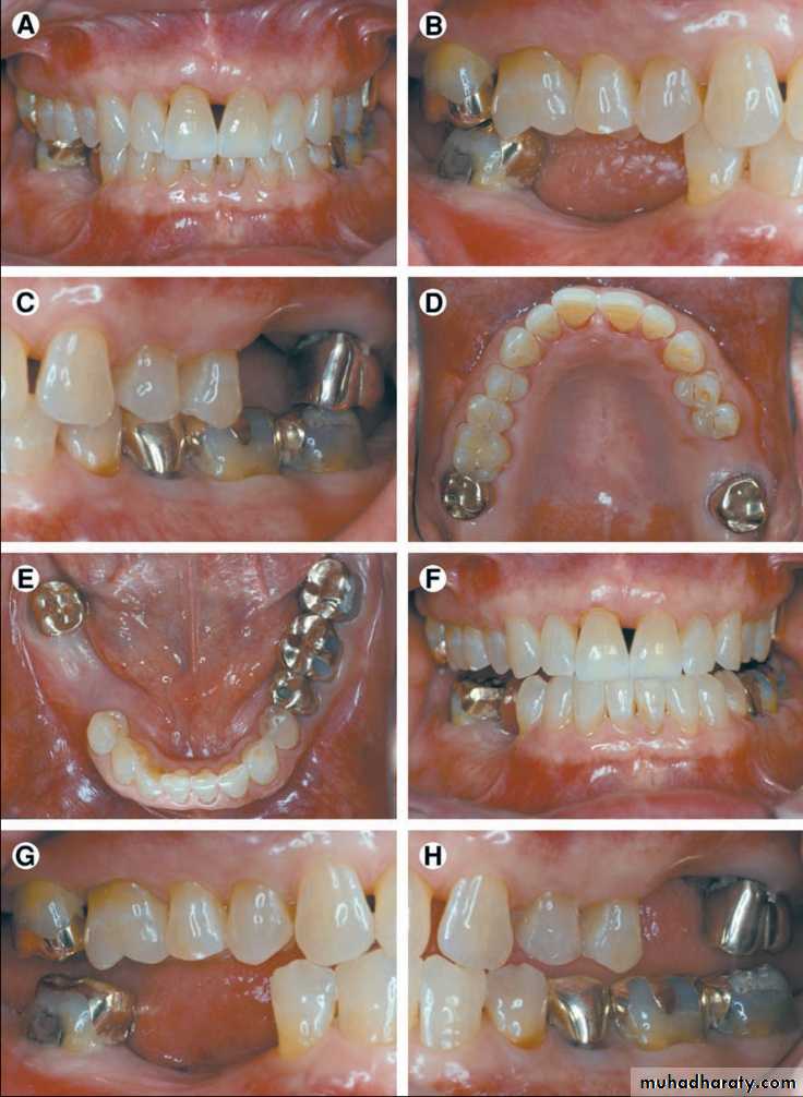 Entire occlusion must be reestablished, including changes in the occlusal vertical dimension. Class II div 2 and Class III molar and jaw relationships are seen.