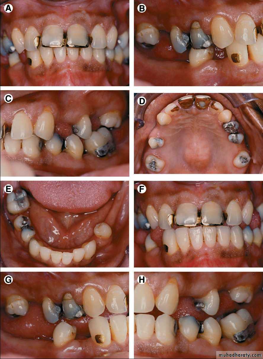 Any edentulous area or combination of edentulous areas requiring a high level of patient complianceAbutments in 4 or more sextants have insufficient tooth structure to retain or support intracoronal or extracoronal restorations.