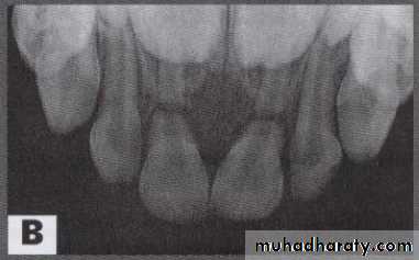 Diagnosis; teeth appear shortened, or in severe cases could appear missing, not mobile nor tender