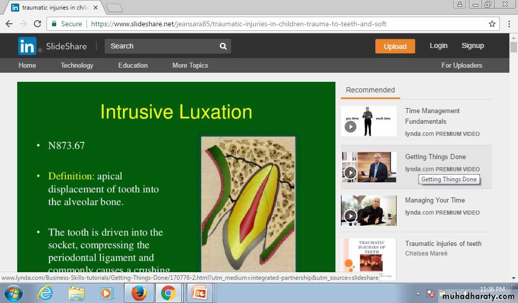 Tooth displace towards the socket, compressing the PDL and crushing the alveolar bone.Diagnosis; not mobile, not tender,