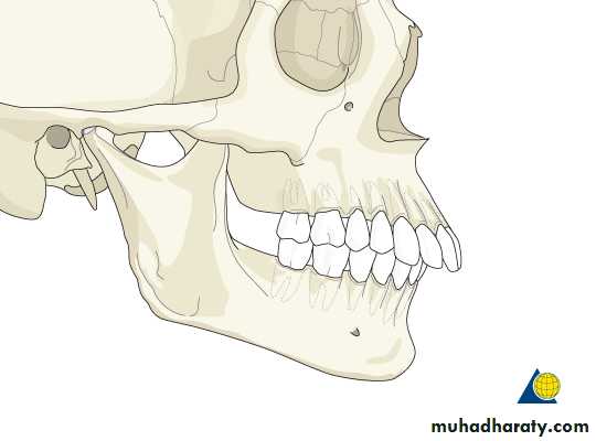 Dentoskeletal compensation for the skeletal defect through reduction of tooth material is the treatment of choice ( camouflaging).Generally maxillary first premolars are extracted.