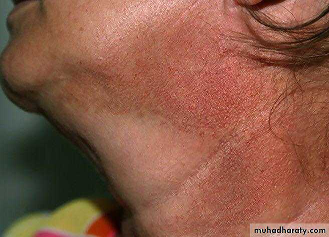 Sun-induced wrinkling on the back of the neck shows a series of crisscrossed lines that form a rhomboidal patternPoikiloderma Of Civatte