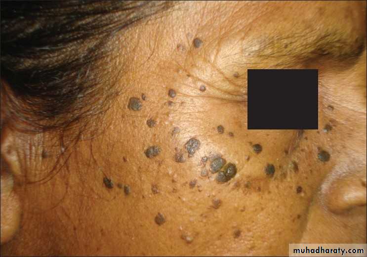 Slightly elevated occur on the back of the hands and may be misdiagnosed as solar lentigines.Seborrheic Keratoses