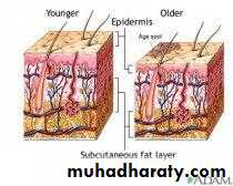 There is a gradual loss of blood vessels, dermal collagen, subcutaneous fat, and the number of elastic fibers.