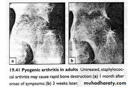 IntroductionIt can occur in any age even in newly born baby , and usually seen in children under two years old .The causative micro organism is staph . aures , and it reach the joint either directly from distant focus by blood or by local spread from osteomyelitis of the femur .