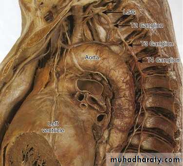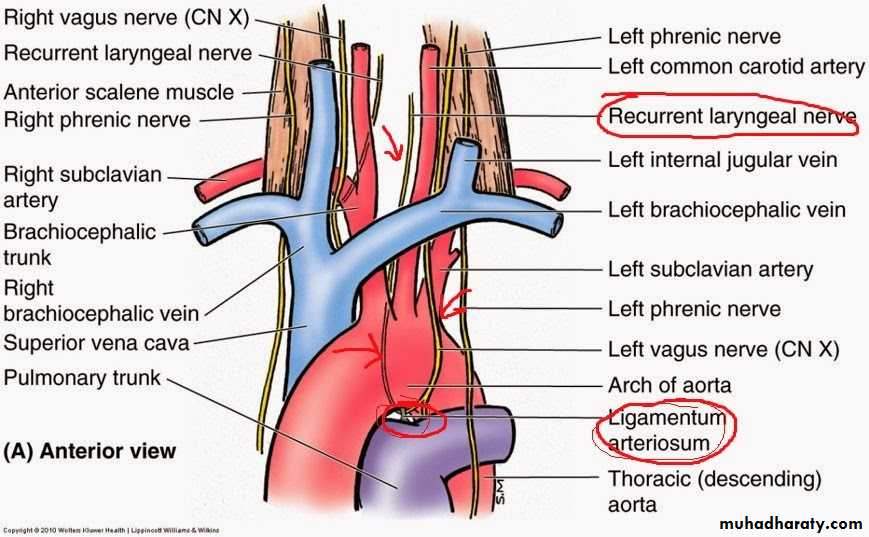 The superior mediastinum contains the followings:1-The Arch of the Aorta & the 3 main As arising from it ( L.subclavian,L common carotid & the