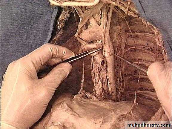 13-The arch of tha Azygoes vein as it arches to reach the superior vena cava.