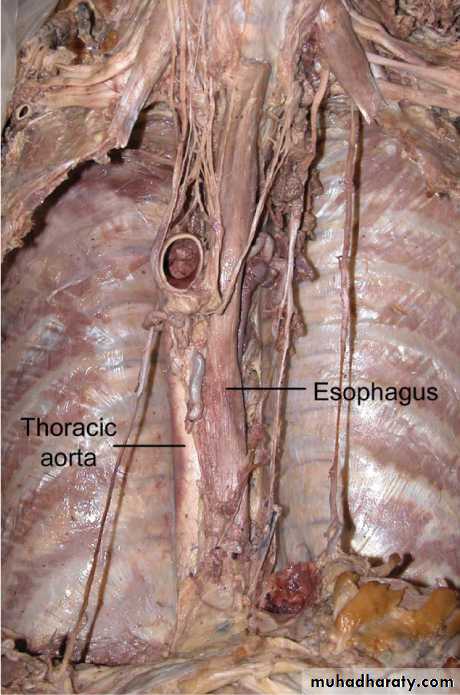 Is the Space posterior to the pericardium(contains the Heart ) & the sloping part of the diaphragm.The space lies anterior to the lower 8 thoracic vertebrae ( T5-T12).It contains :1-The Esophagus.