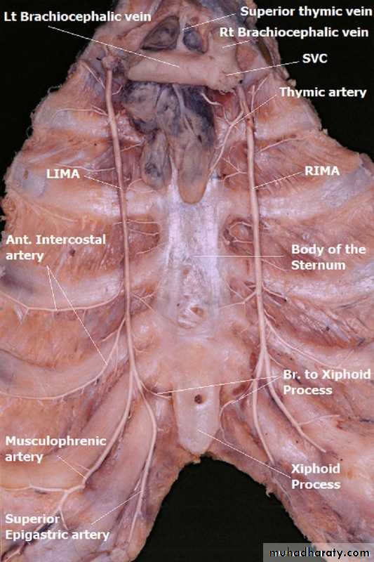 It encloses between the back of the body of the Sternum (infront ) & anterior to the Pericardium(behind).It contains the following structures:
