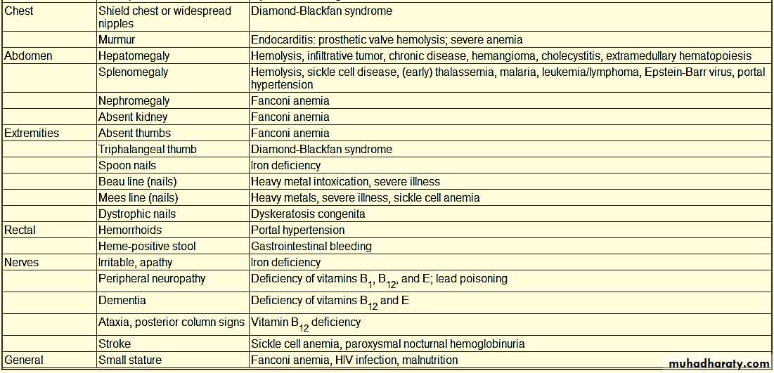 Other findings include tachycardia and a systolic murmur. If the anemia is very severe or if the patient has complications that put added stress on the cardiovascular system, there may be signs of congestive heart failure.