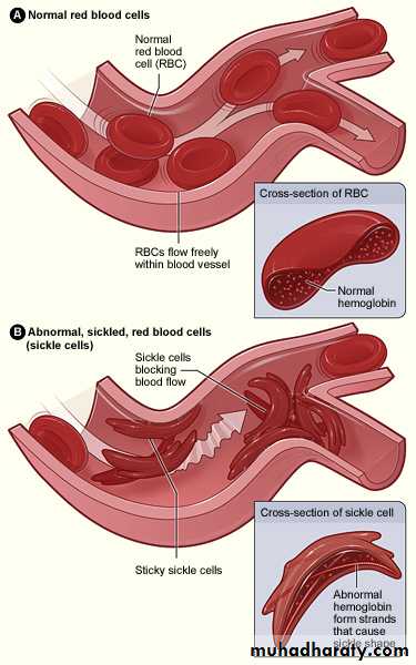 Sickle cell disease is the collective name given to haemoglobinopathies in which HbS is inherited.Normal RBC
