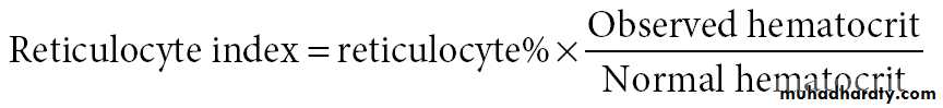 The reticulocyte percentage can be corrected to measure the magnitude of marrow production in response to hemolysis as follows: