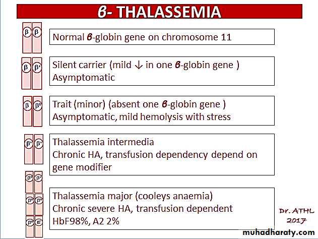 • The clinical phenotype of β-thalassemia is related to the degree of globin chain imbalance.• Normally there are two β-globin genes; clinical manifestations of β-thalassemia variants reflect the number of genes affected.