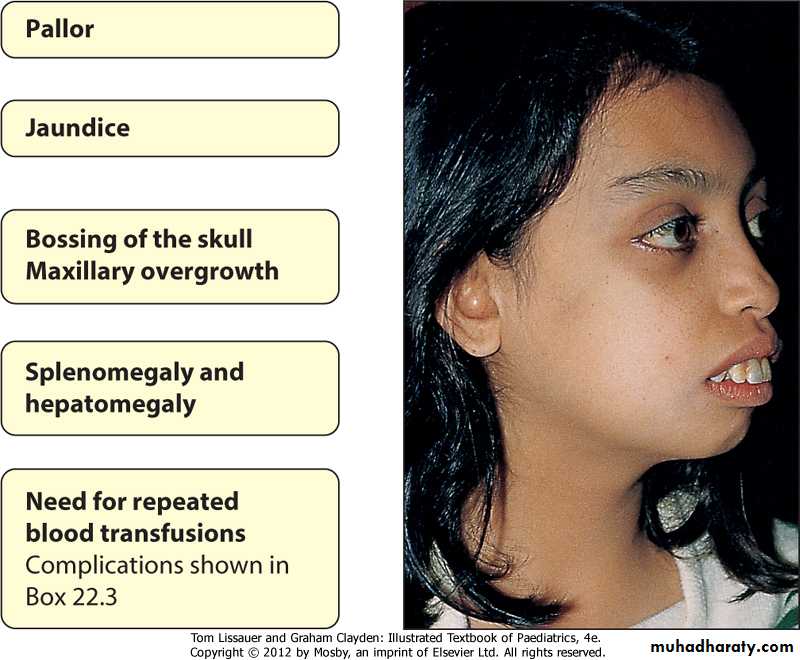• Homozygous β-thalassemia (β-thalassemia major’ Cooley anemia’ and intermedia).