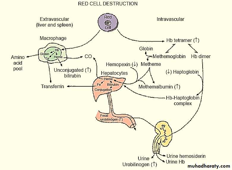 Hemolysis is defined as the premature destruction of RBCs (a shortened RBC life span). Anemia results when the rate of destruction exceeds the capacity of the marrow to produce RBCs.The lifespan of a normal red cell is 120 days. In haemolysis, red cell survival may be reduced to a few days but bone marrow production can increase about eightfold, so haemolysis only leads to anaemia when the bone marrow is no longer able to compensate for the premature destruction of red cells.